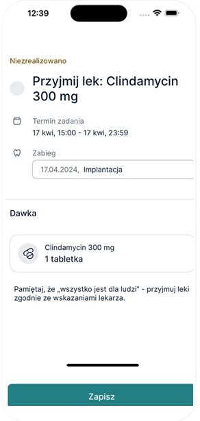 Implantology Patient,, Thanks to the app, I remembered to take all my medications, and after the swelling occurred, I received detailed information on what to do next without needing an additional visit. "